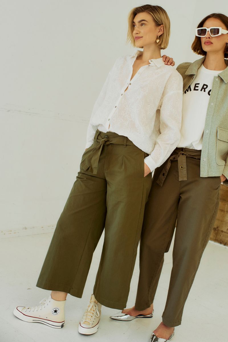 - Casual bukser: Freequent erbjuder också mer avslappnade bukser, det är idealiskt för en helg eller en dag på kontoret, där komforten är i fokus. Disse bukser kan nemt styles op eller ned, beroende på vilken top eller så du kombinerar dem med.