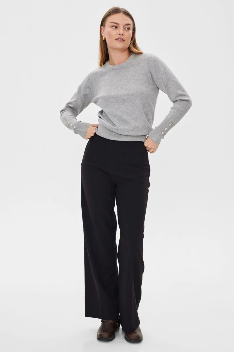 Freequents kollektioner av bukser erbjuder något för alla smaker. Vad du än föredrar klassiska, ensfarvede modeller eller mer iøjnefaldande stilar med detaljer som knappar eller lynlås, hittar du hos Freequent. De flesta av deras bukser kommer i neutrala färger som sort, grå, blå och brun men du vill också hitta sæsonbestemte färgtoner, som kan tillföra extra personlighet till din outfit.