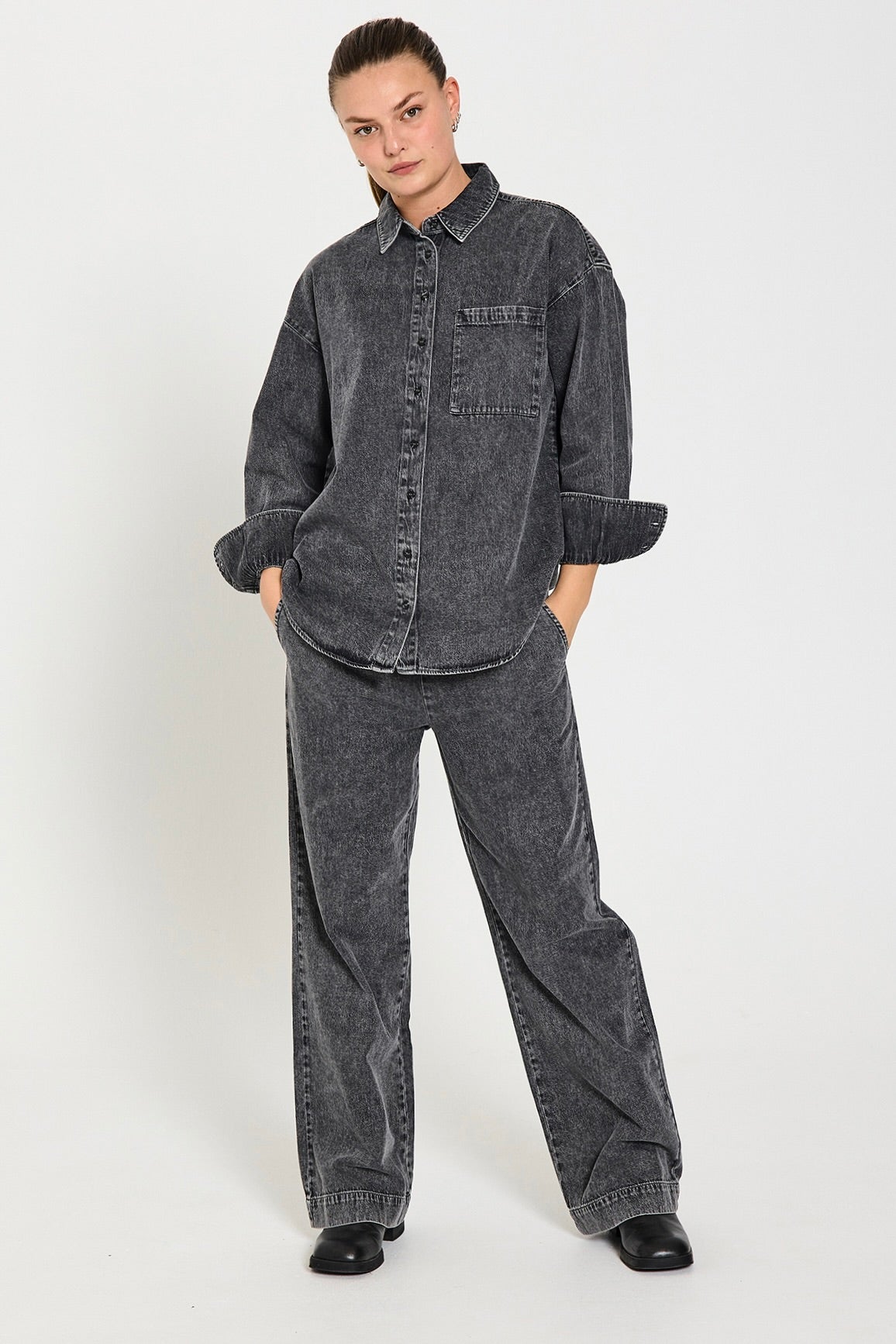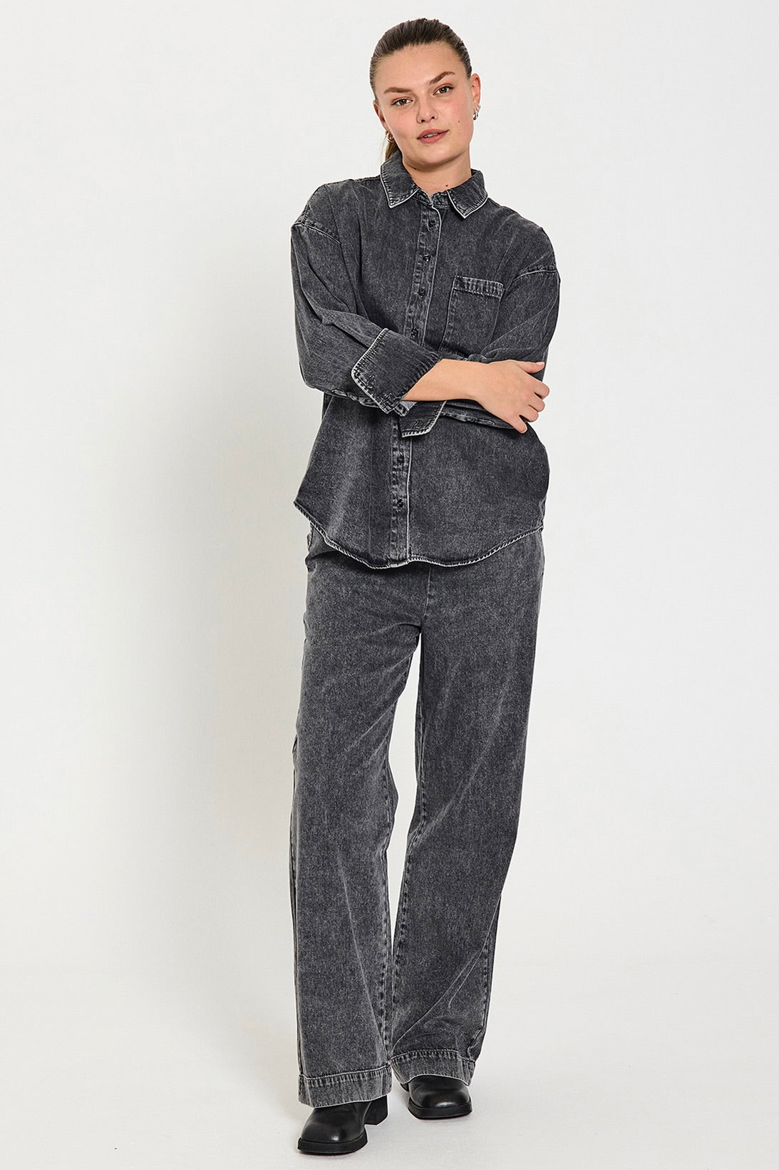 - Coatede bukser: För ett modernt och kantet utseende kan du välja Freequents coatede bukser, som ger en skinnande finish och tillägg och extra strejf av lyx till din stil.