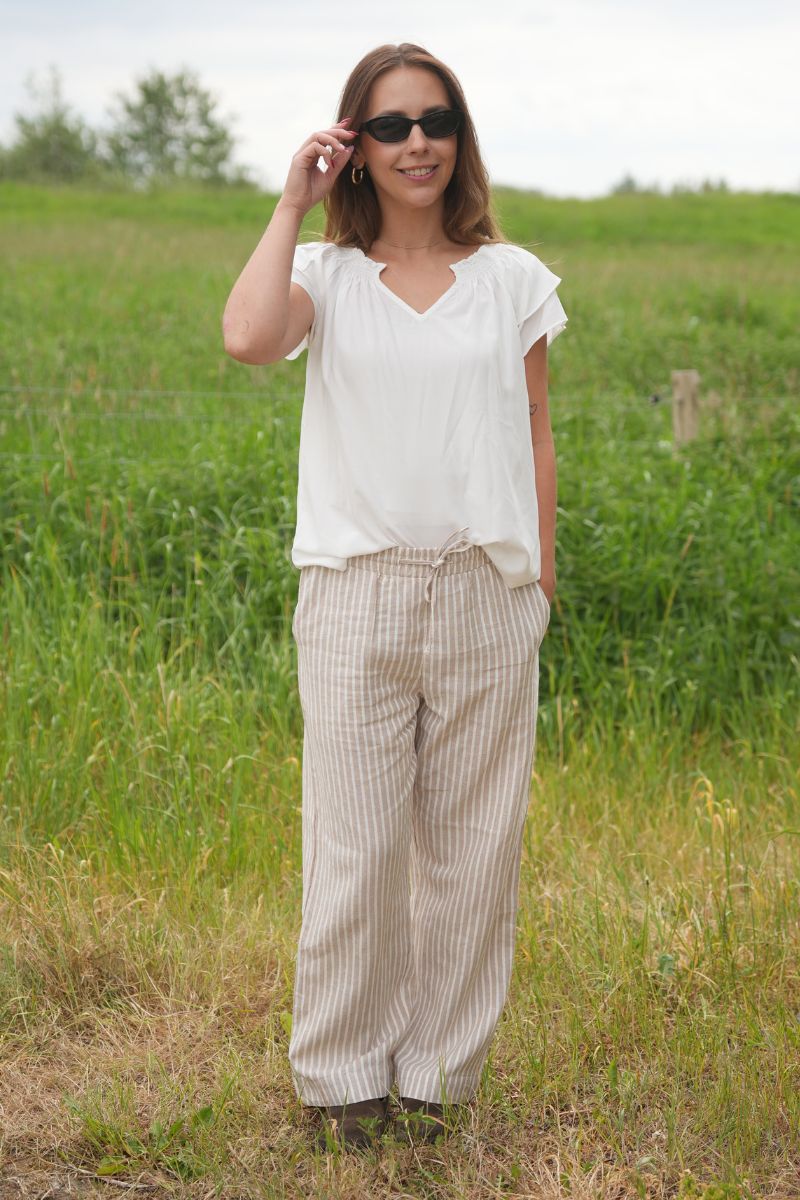 - Casual hverdag : För en avslappnad, men stadig sofistikerad look, kombinerar en enkel bluse från Freequent med deras klassiska, bekväma bukser. Lägg till ett par sneakers eller flade sandaler (hvis väderet tillader det) för att hålla det afslappet. Om du vill ha en lag-på-lag look, kan du lägga till en kofta eller denimjacke för extra stil. Leg också med tillbehör, som et flot tørklæde eller en stor uppgift för att ge outfittet et personligt præg.