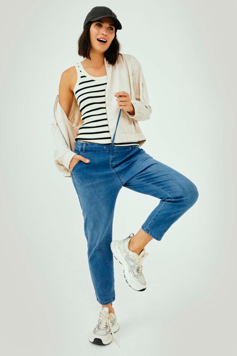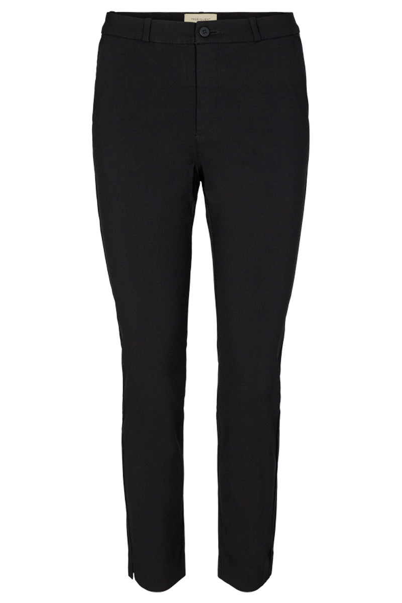 - Casual bukser: Freequent erbjuder också mer avslappnade bukser, det är idealiskt för en helg eller en dag på kontoret, där komforten är i fokus. Disse bukser kan nemt styles op eller ned, beroende på vilken top eller så du kombinerar dem med.