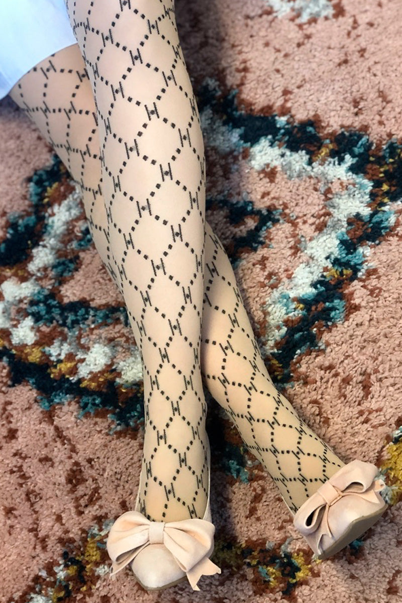 - Tights Letters Logo 60 Den i Sort: Dessa strömpebukser har ett mönster bestående av den eleganta logotypen, som lägger till en modern och stilfull detalj till denna outfit.