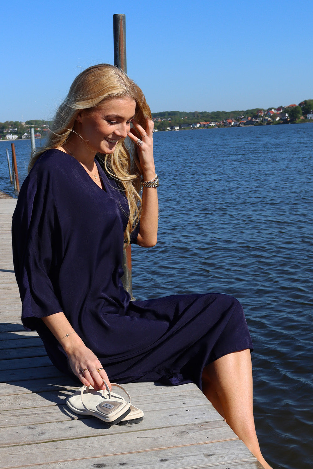 - Alma lång klänning (tät modell med vacker drapering på sidan)