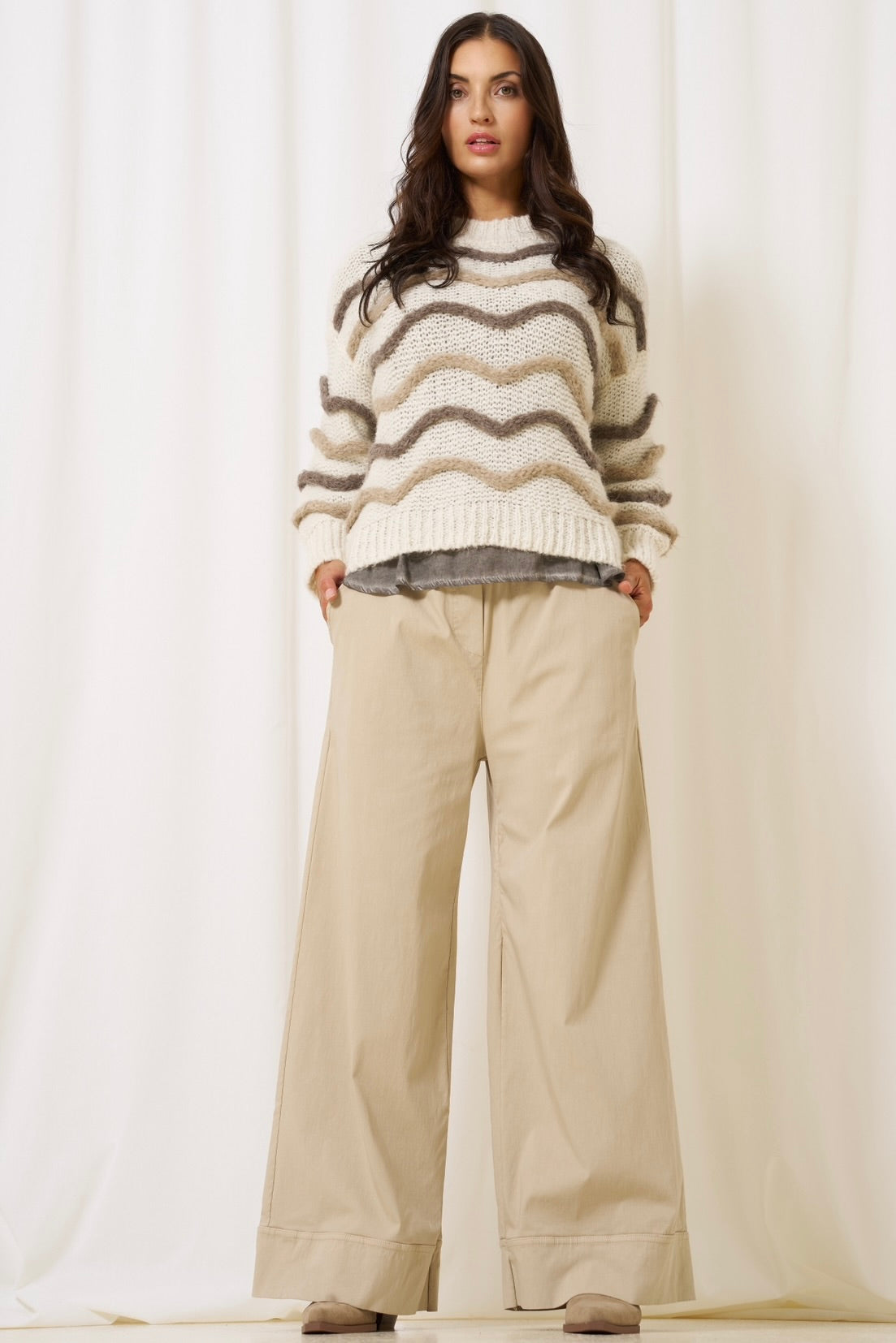 - Blandning av material : För att skapa och visa en intressant outfit är det en god idé med olika material. Till exempel kan du välja en mjuk striktrøje i kombination med en skjorte i bomuld eller silke . Denna kombination av texturer skapar ingen kontrast, men ger också lyxigt och genomfört utseende. Tøjet från Marta du Château är skapat med komfort i fokus, så du kan fritt mixa och matcha utan att gå på kompromiss med varken stil eller bekvämhet.
