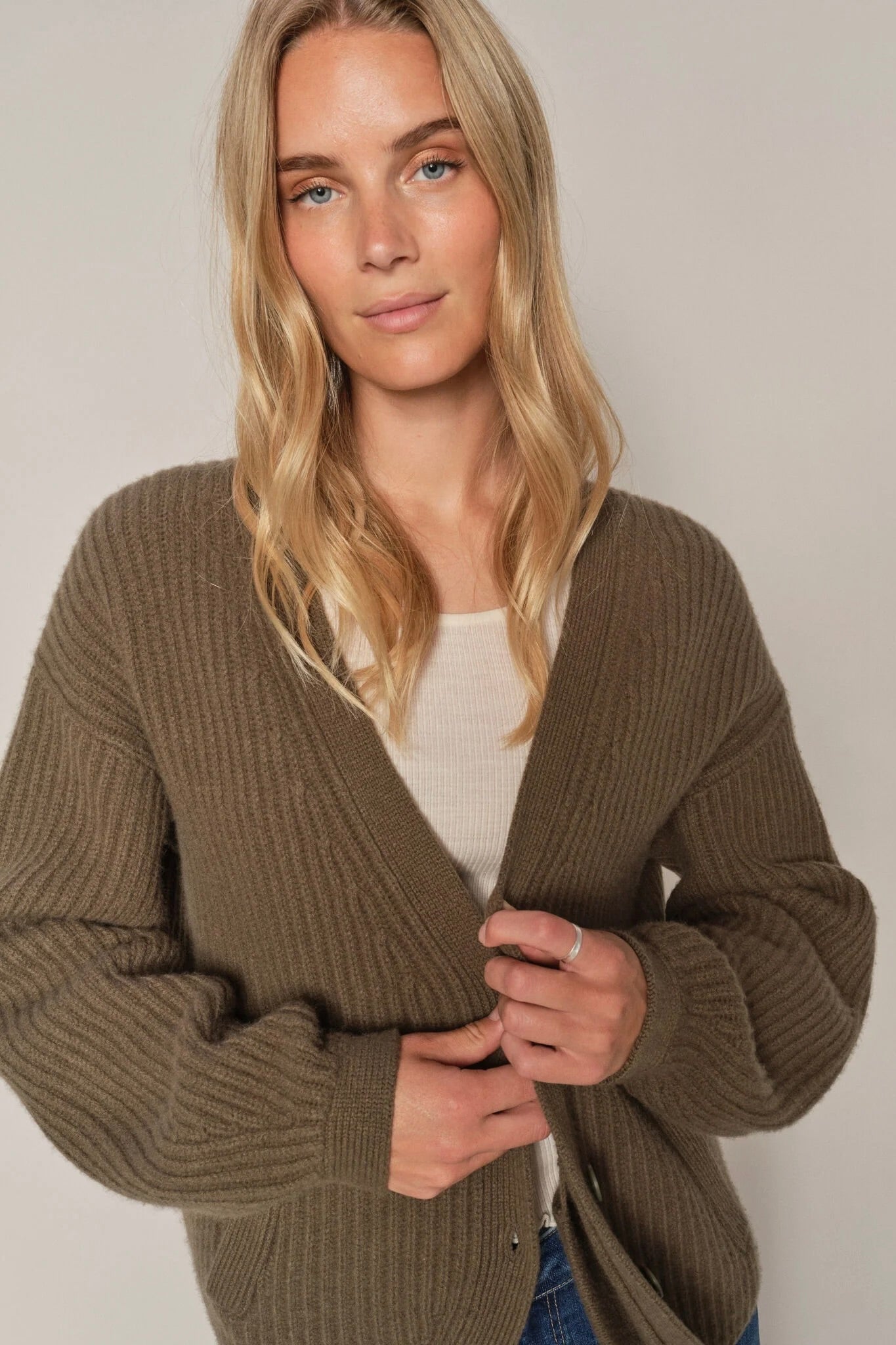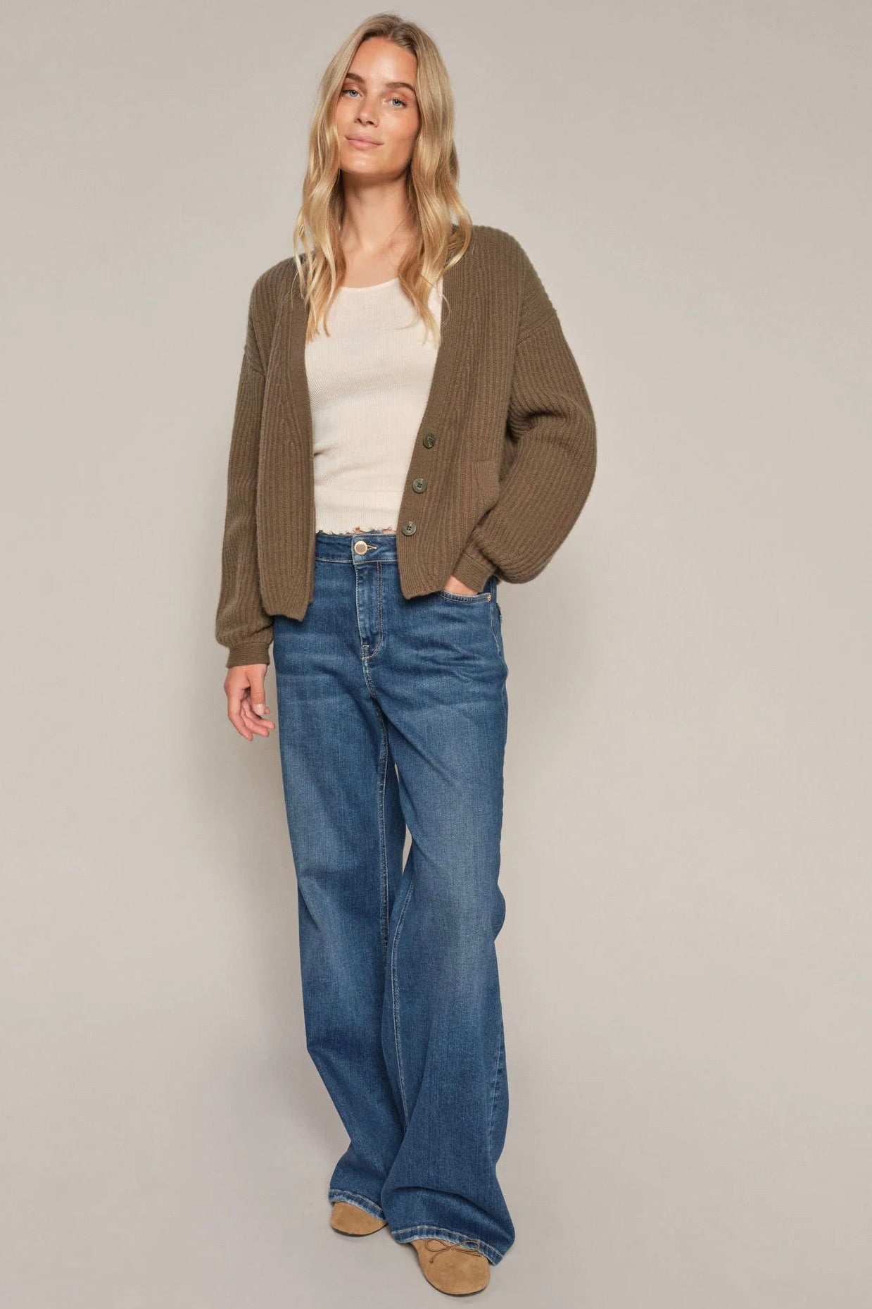 Wynter V-ringad stickad kofta | Havssköldpadda