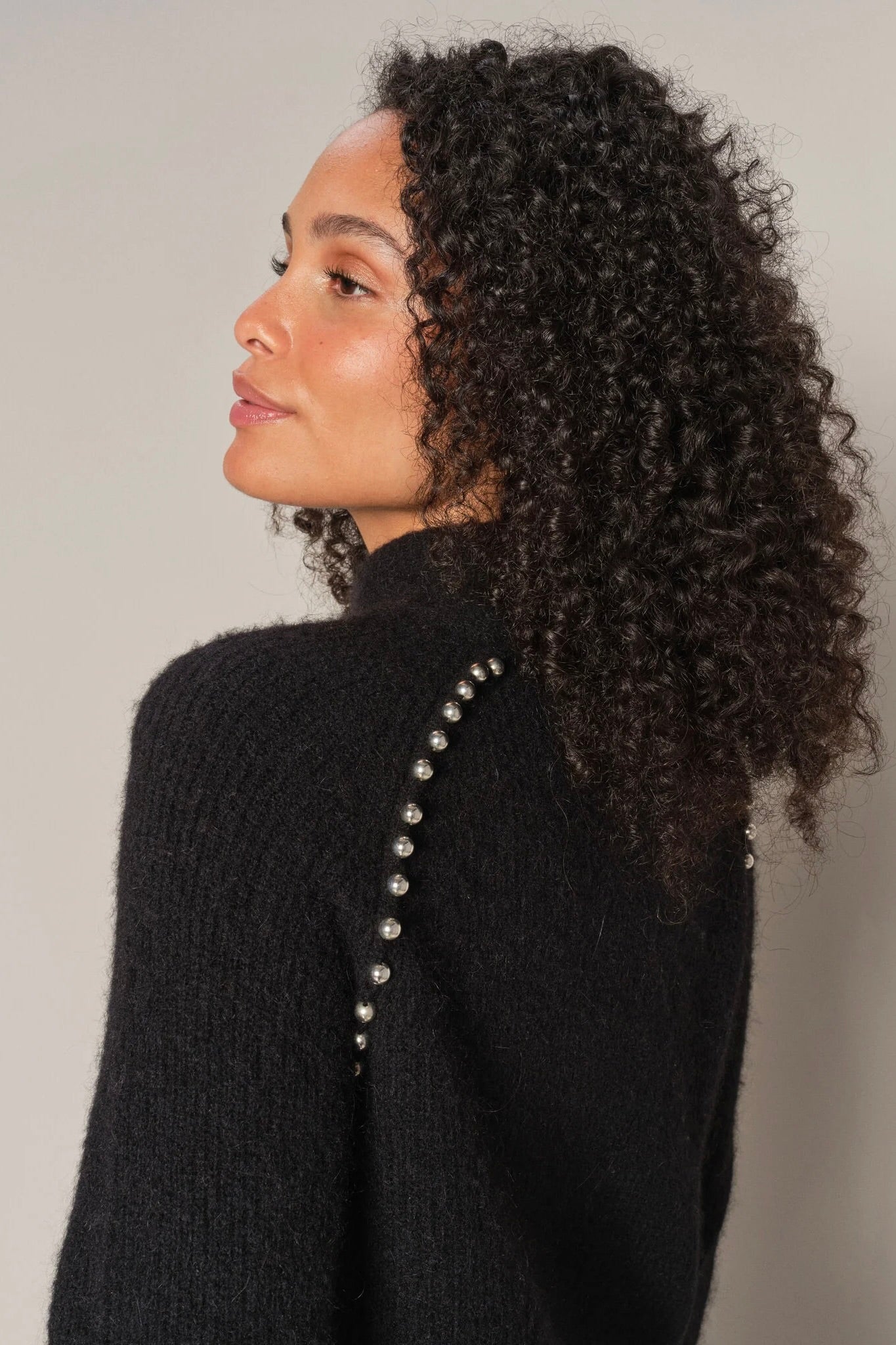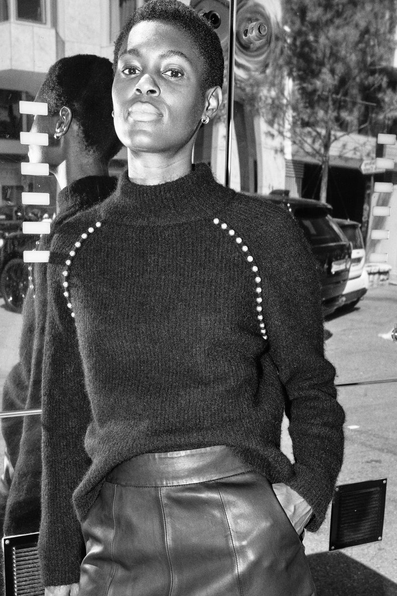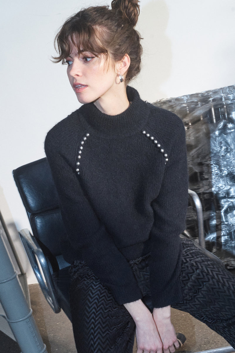 Zora Bead High Neck Stickad | Svart