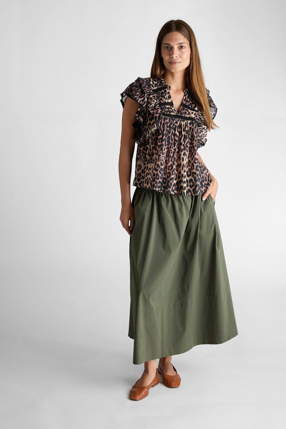 Yara Poplin Kjol | Armé