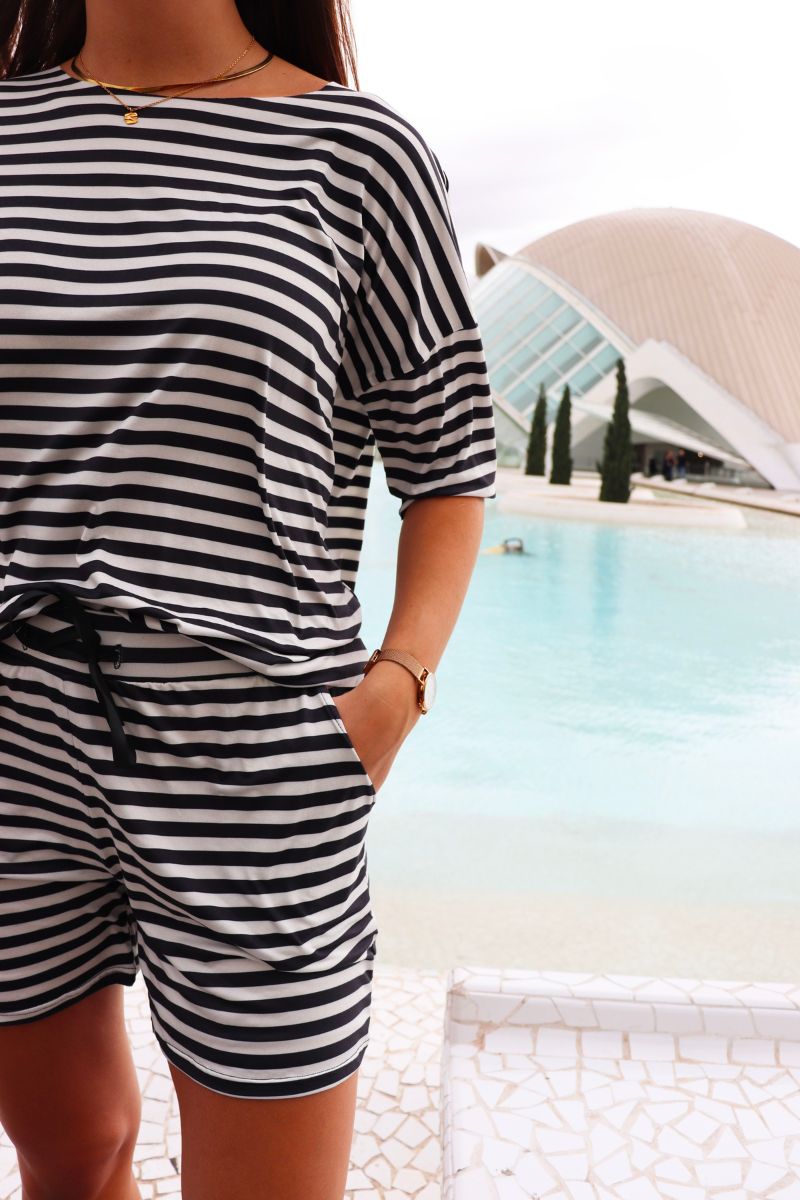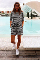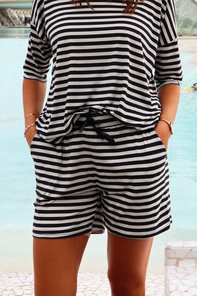 Alma Shorts | Svarta Creme Randiga