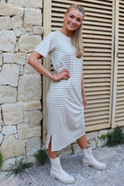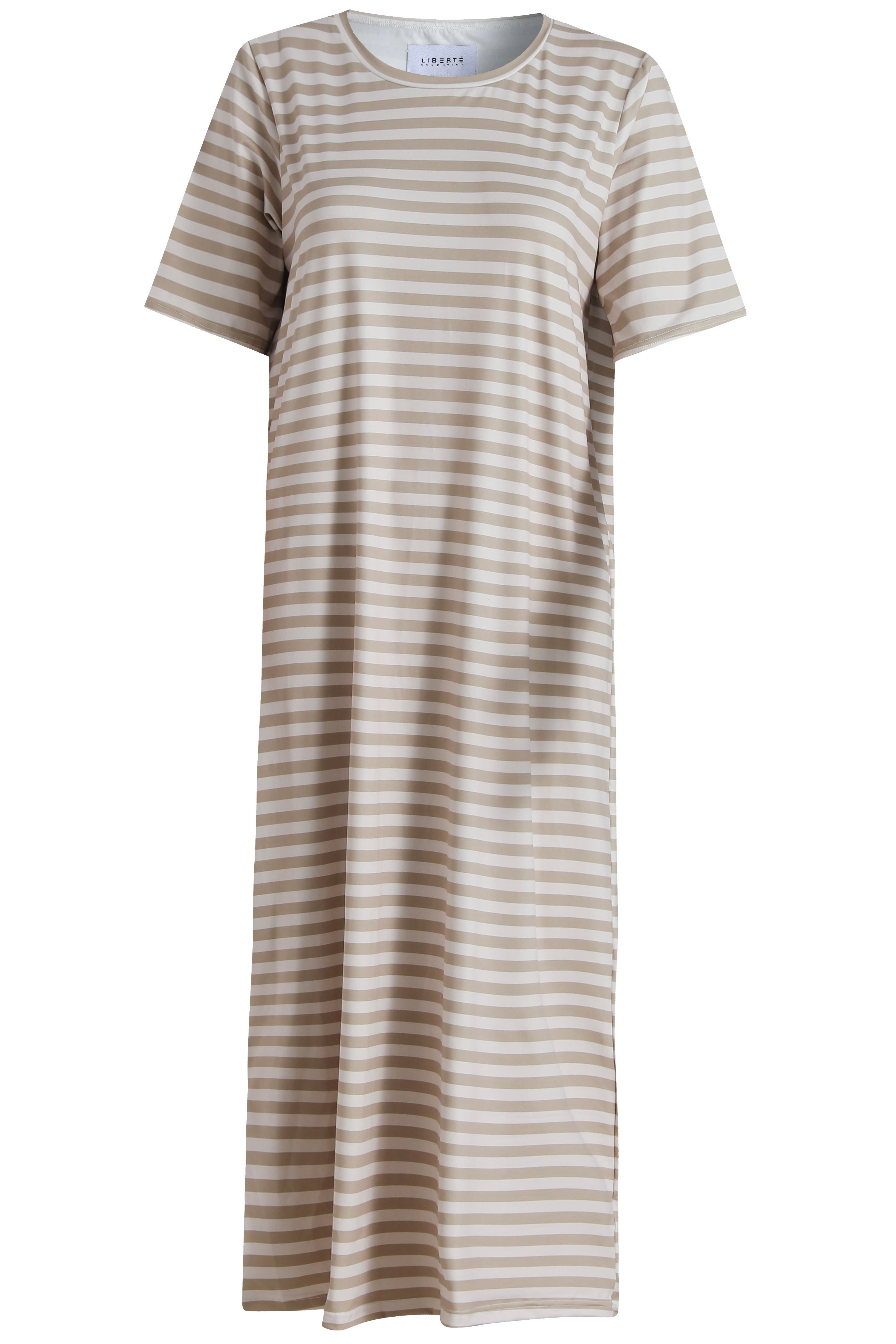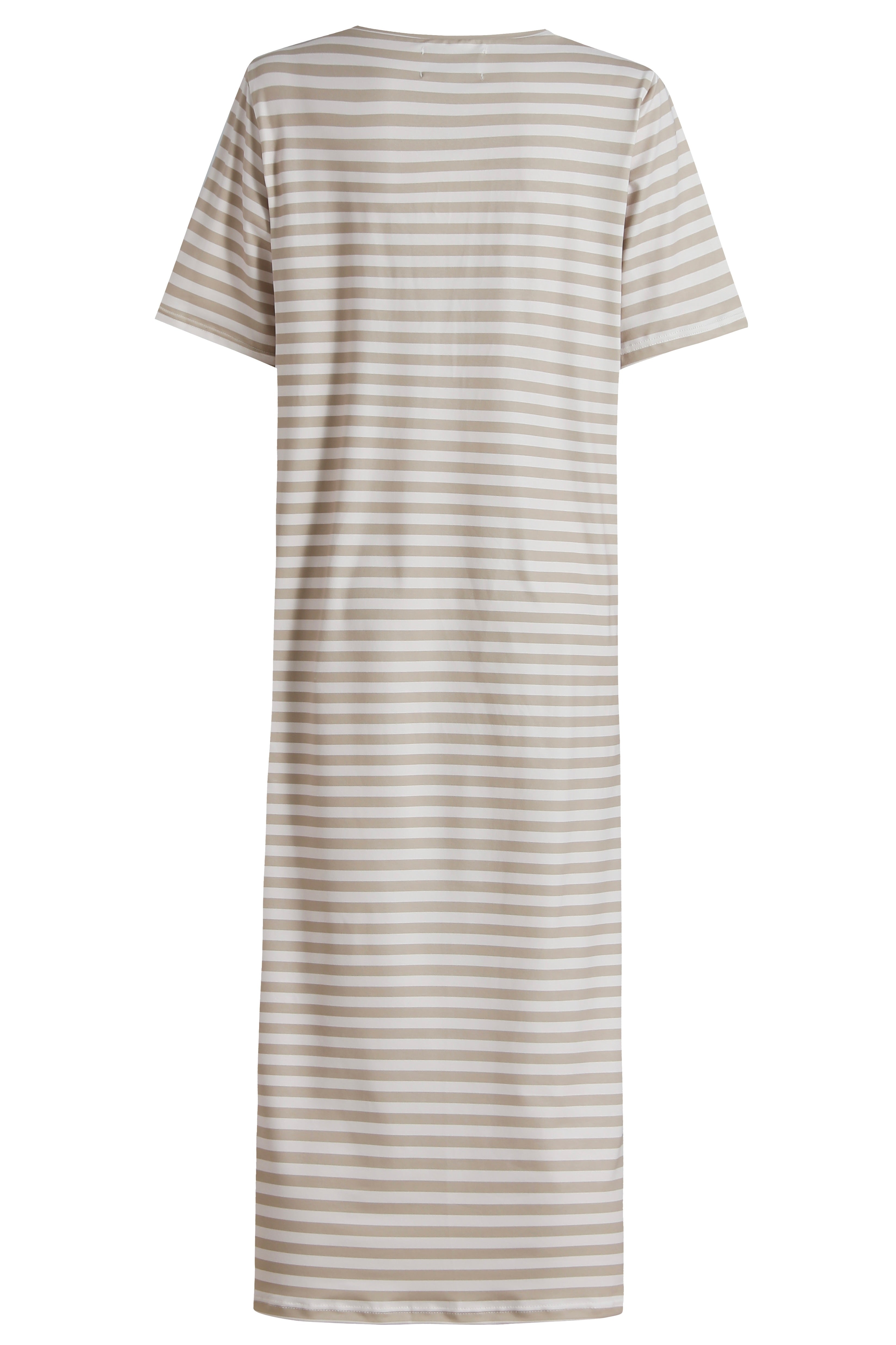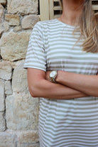 Alma T-shirtklänning | Sandfärgad elfenbensrandig