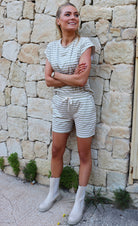 Alma U T-shirt | Sand Elfenbensränder