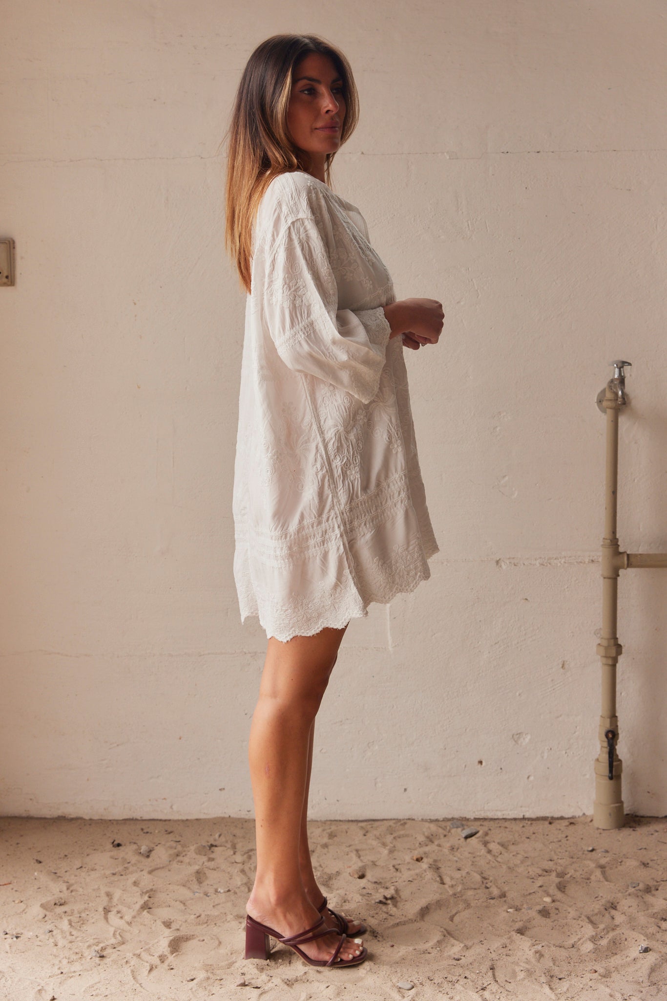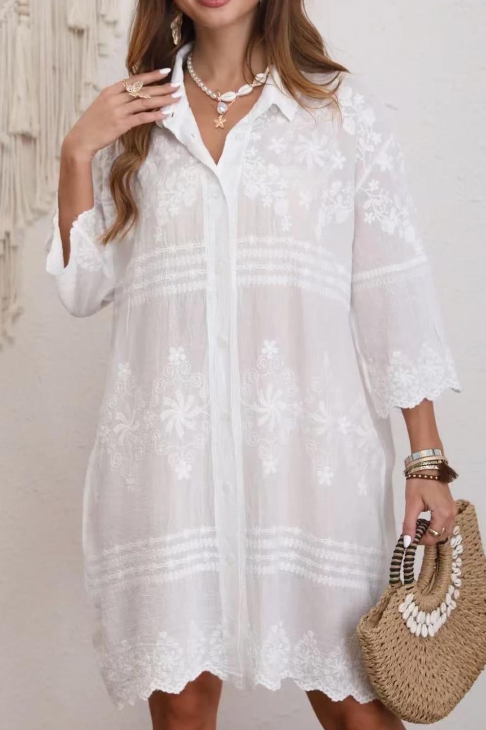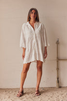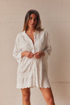 Embla Broderad Skjortklänning | Vit