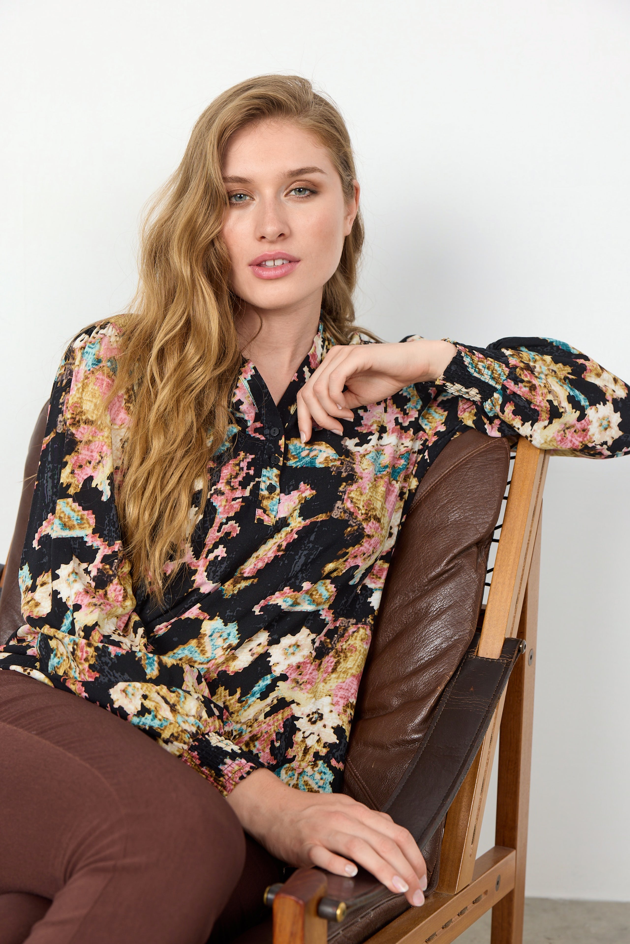 Manon Mönstrad Blus | Svart