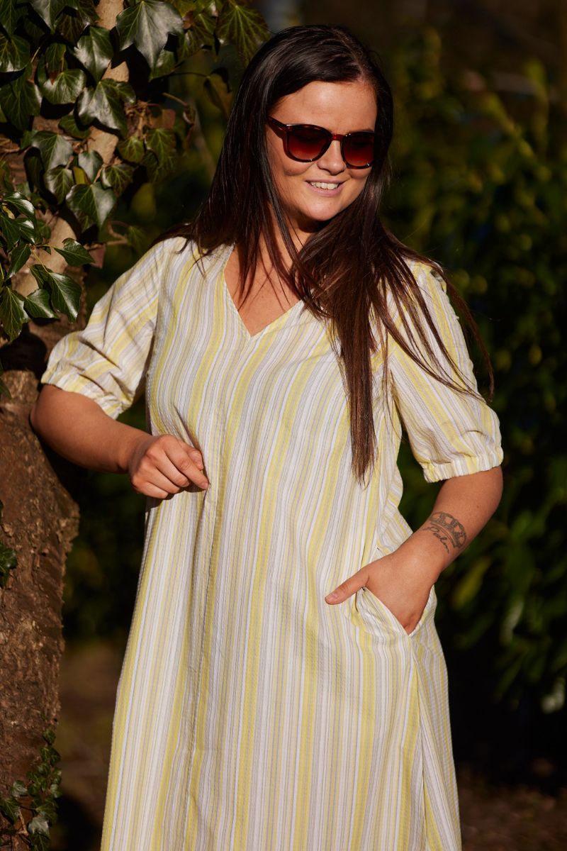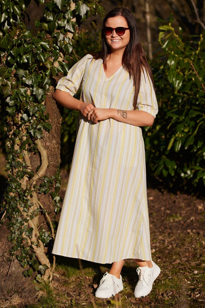 Martine Ss Klänning | Gul Grå Randig