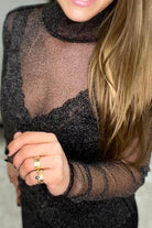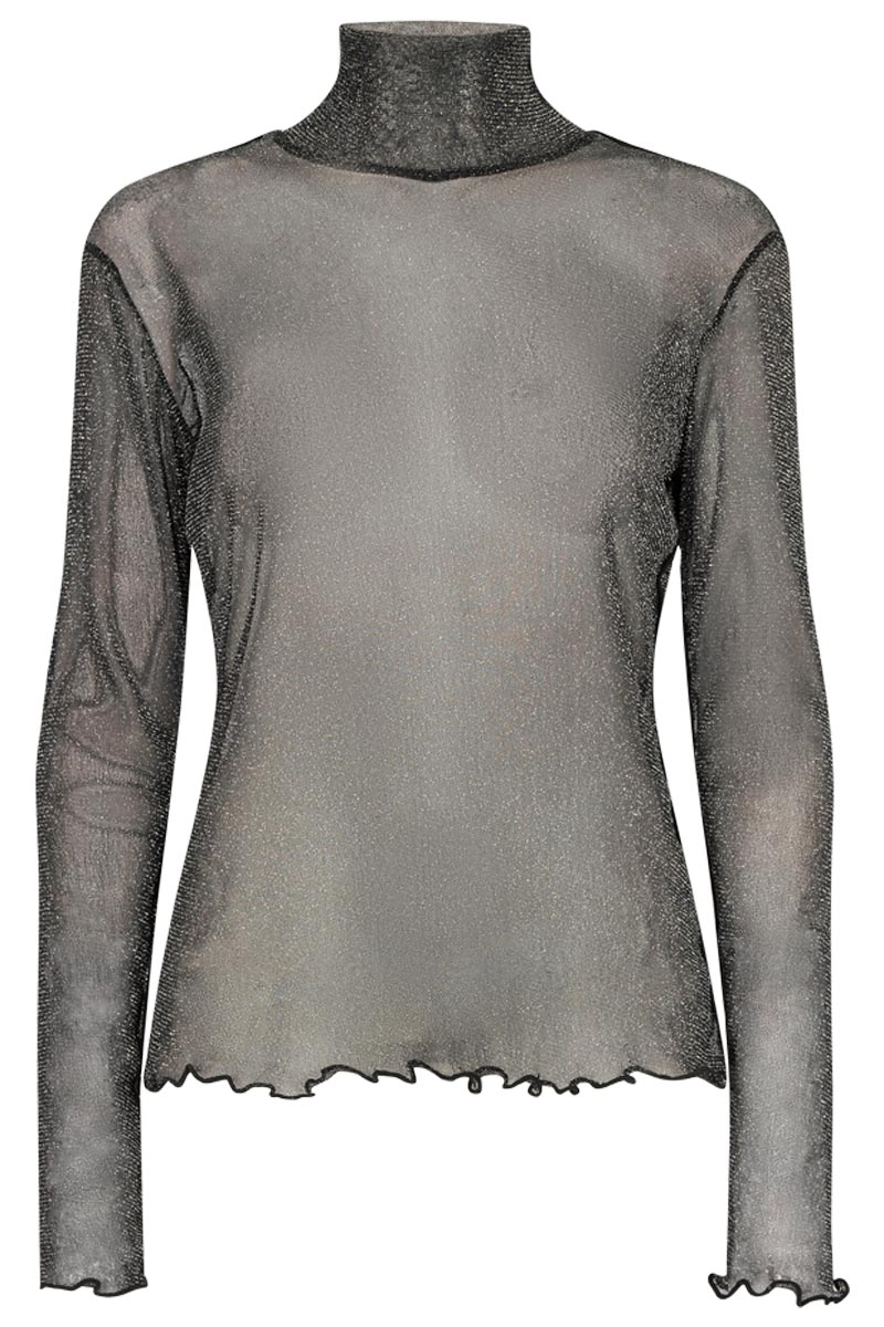 Blus med hög halsringning i mesh | Svart lurex