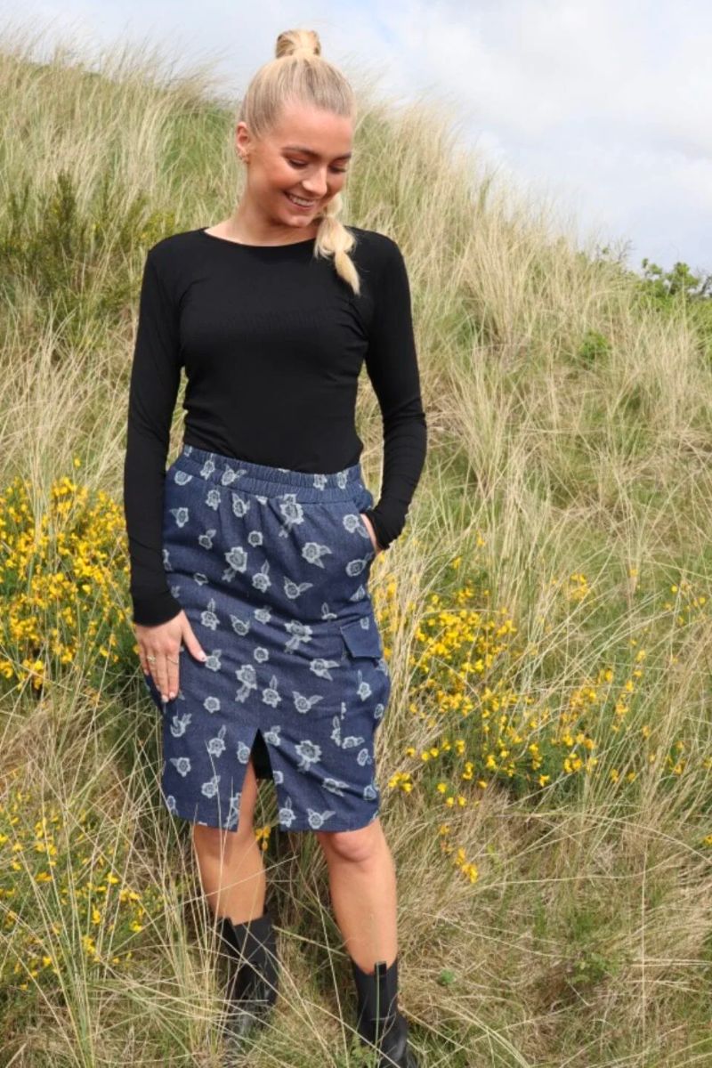 Mitty Cargo Kjol | Denim Blommig