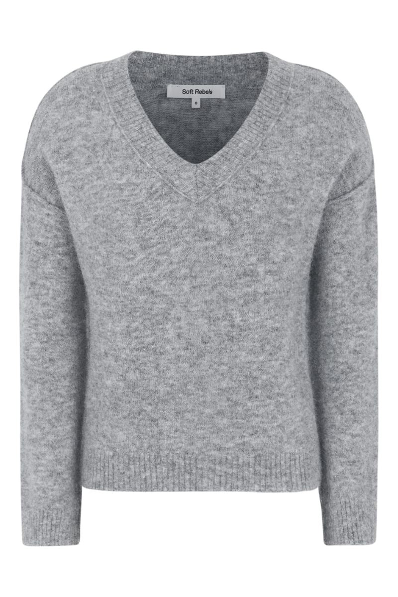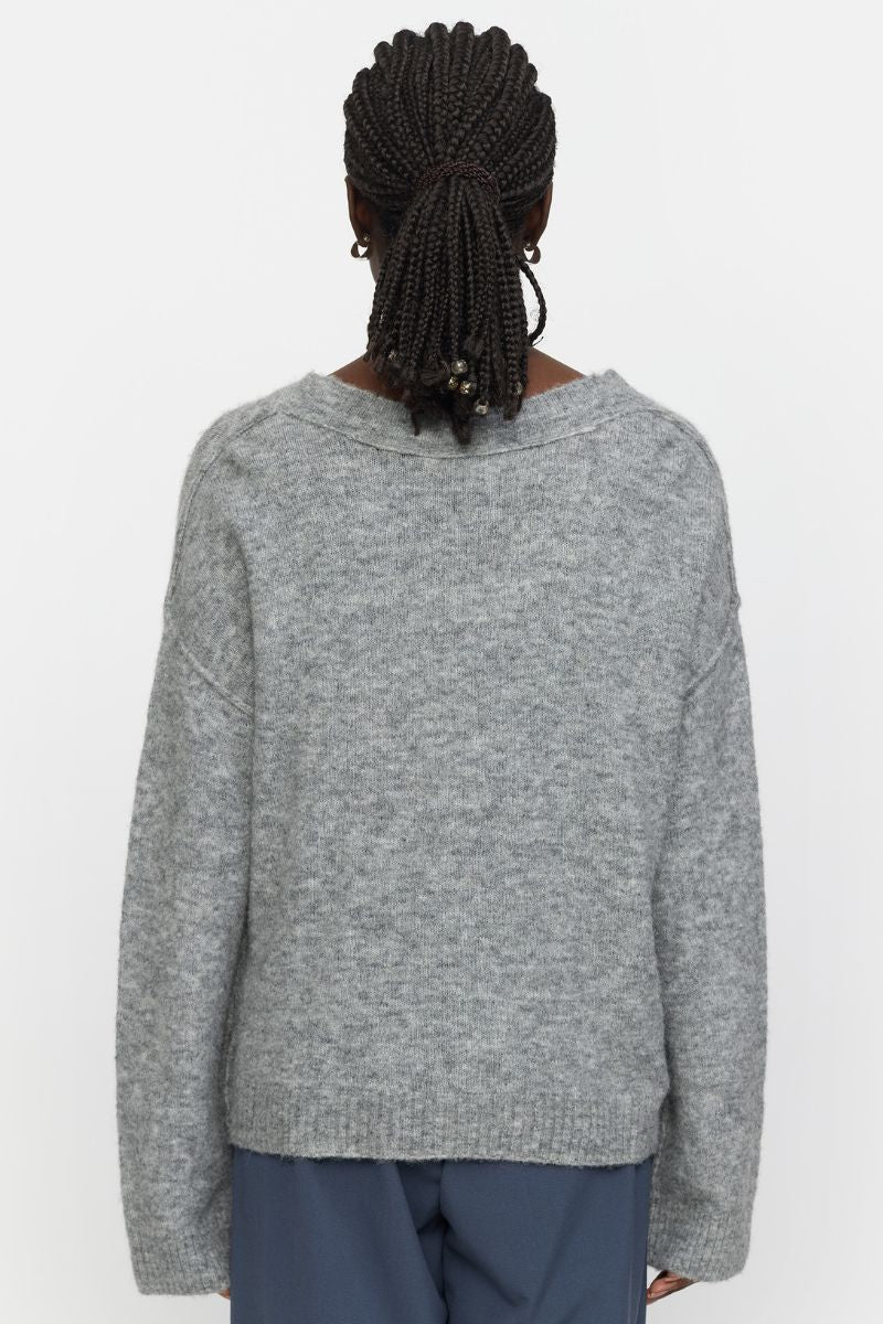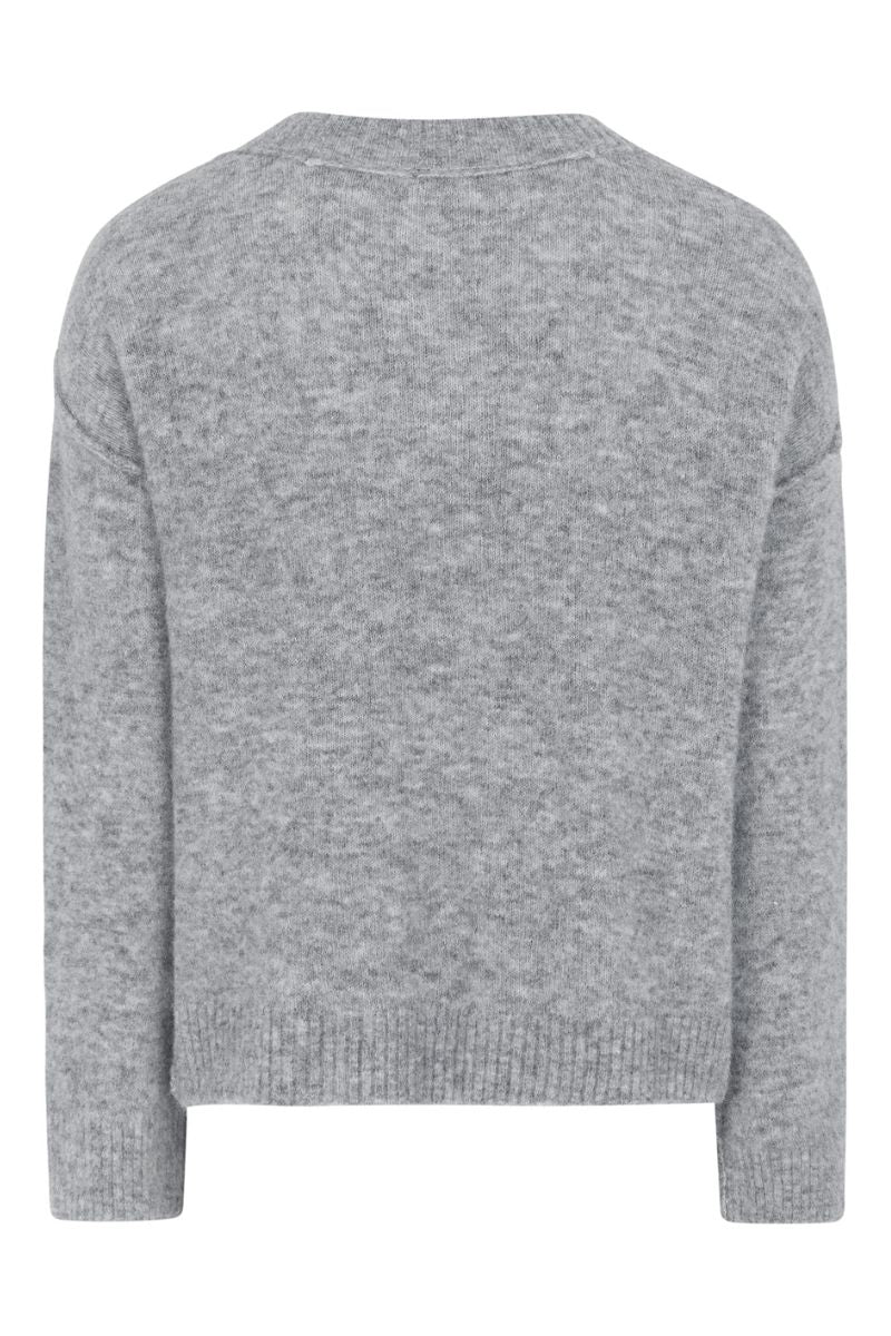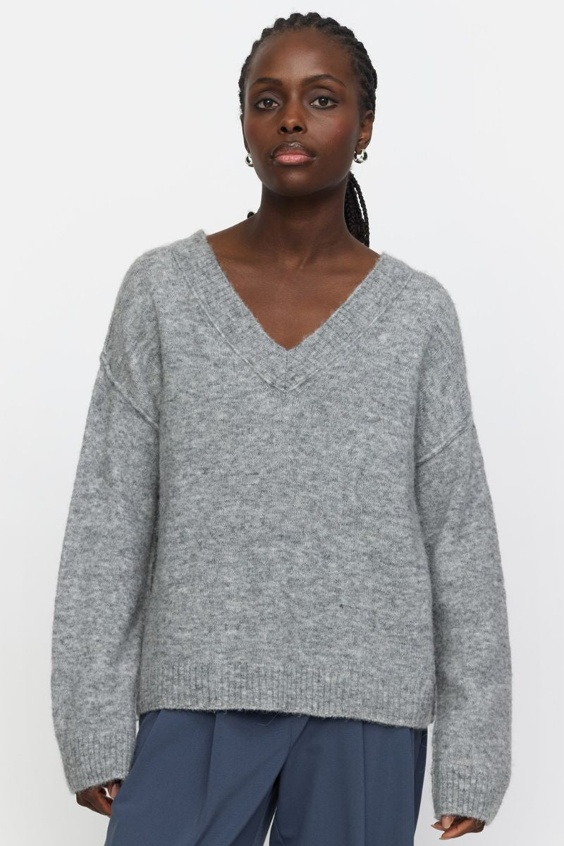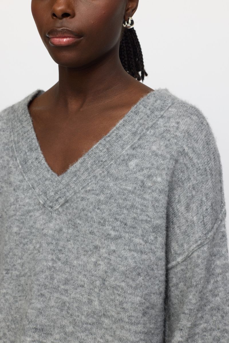 Srallison V-ringad stickad tröja | Mellangrå melerad