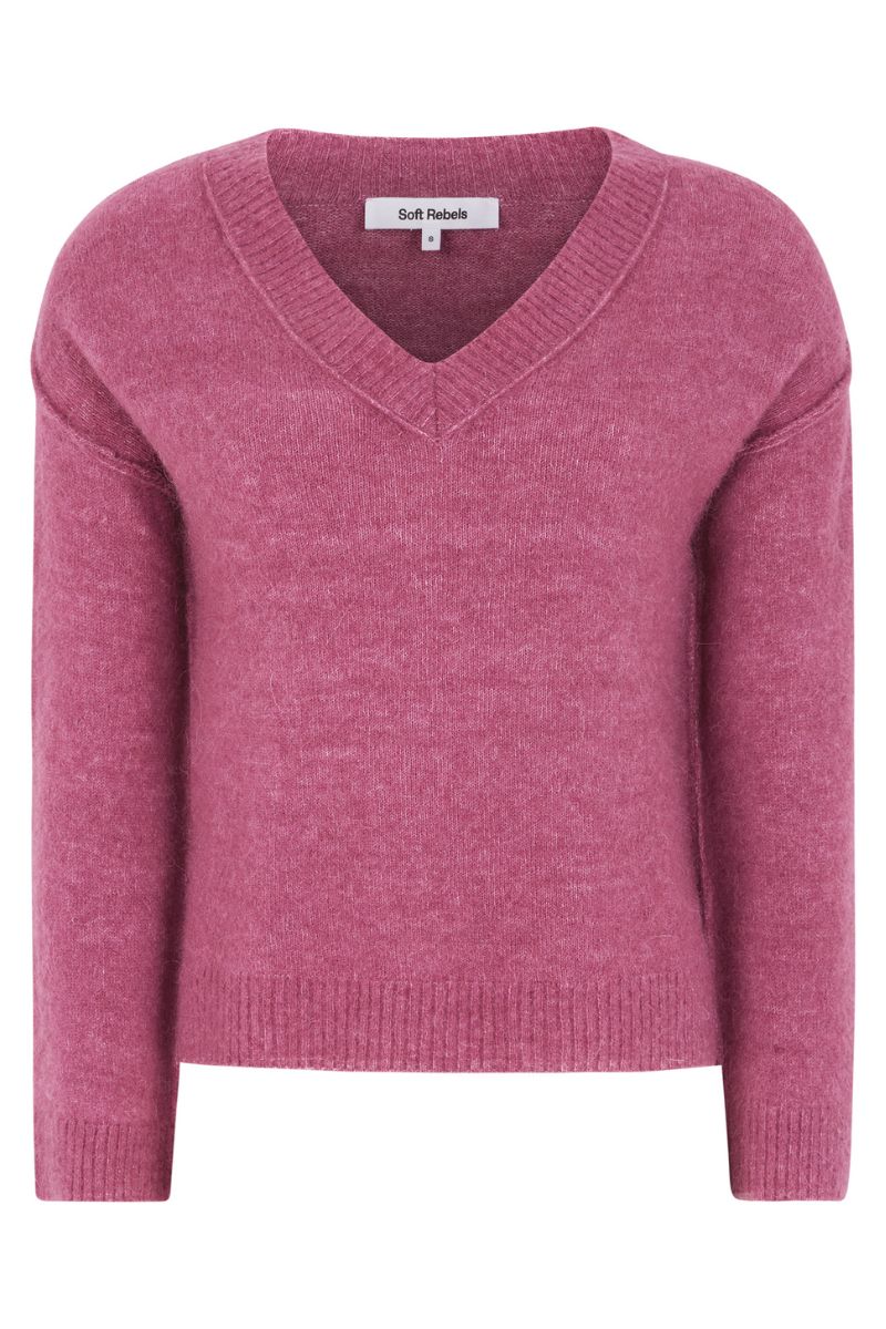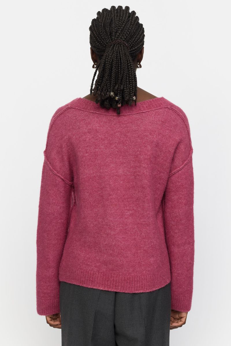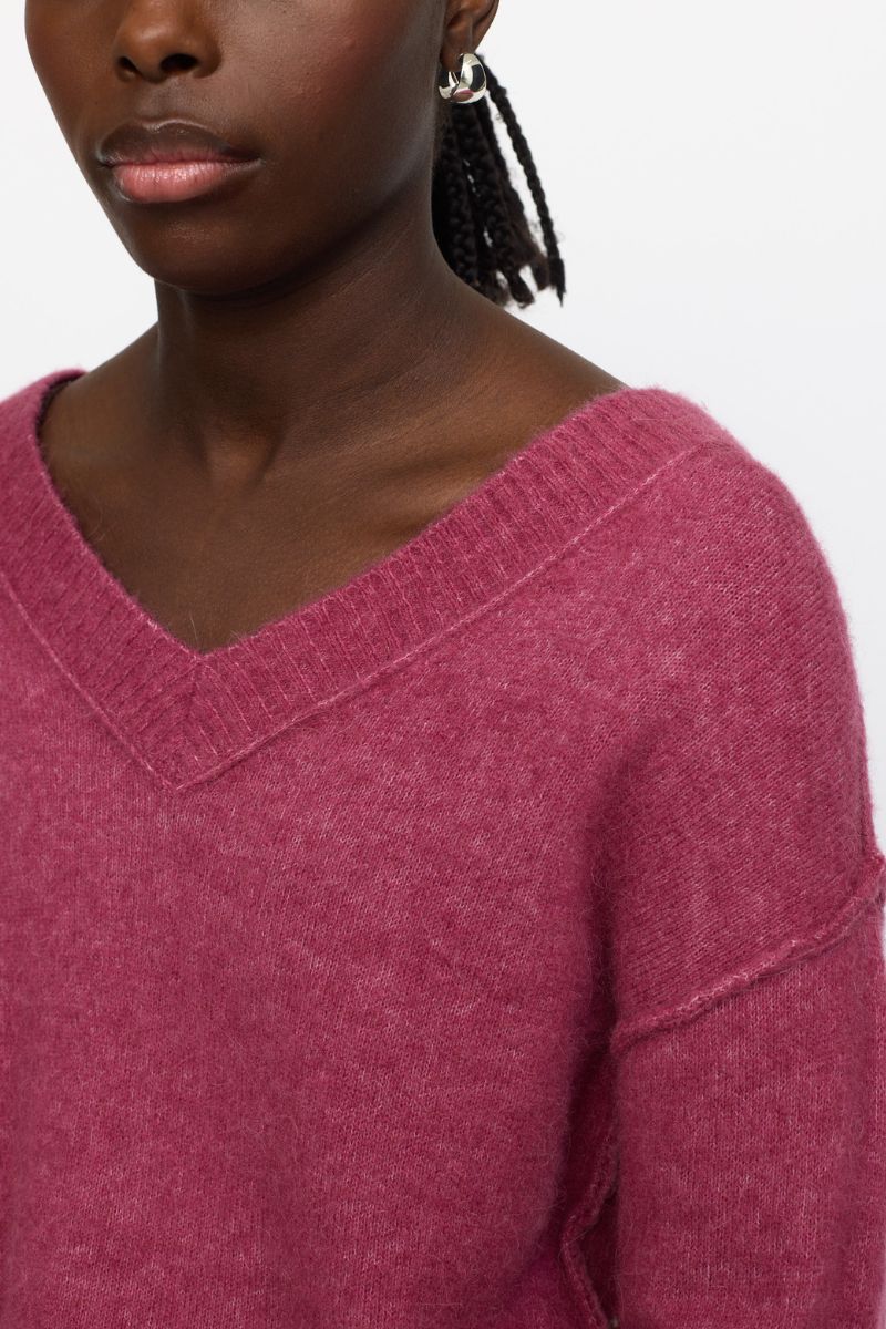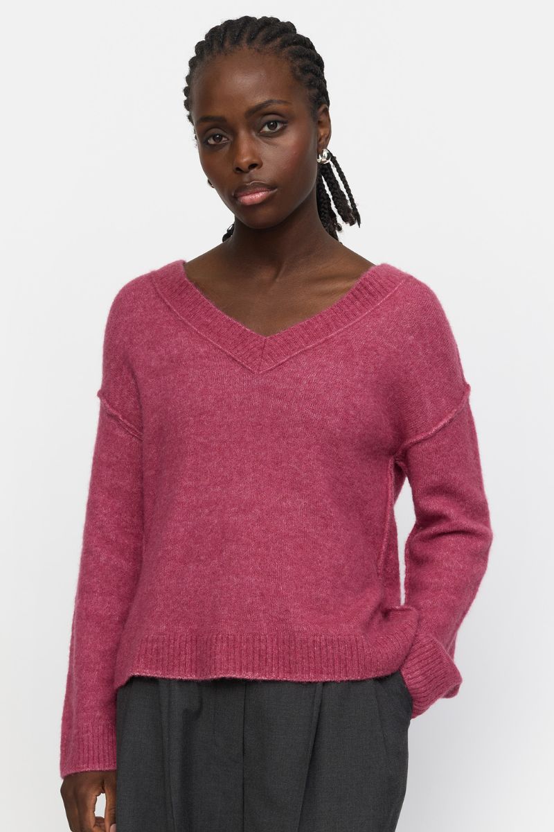 Srallison V-ringad stickad tröja | Rosévinmelerad