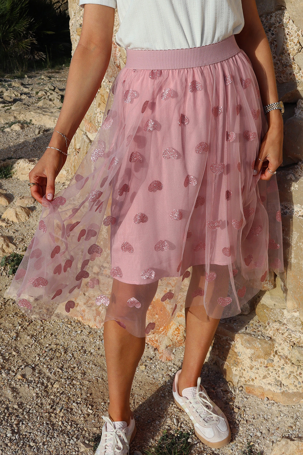 Tyllkjol med hjärtmönster | Roséhjärta