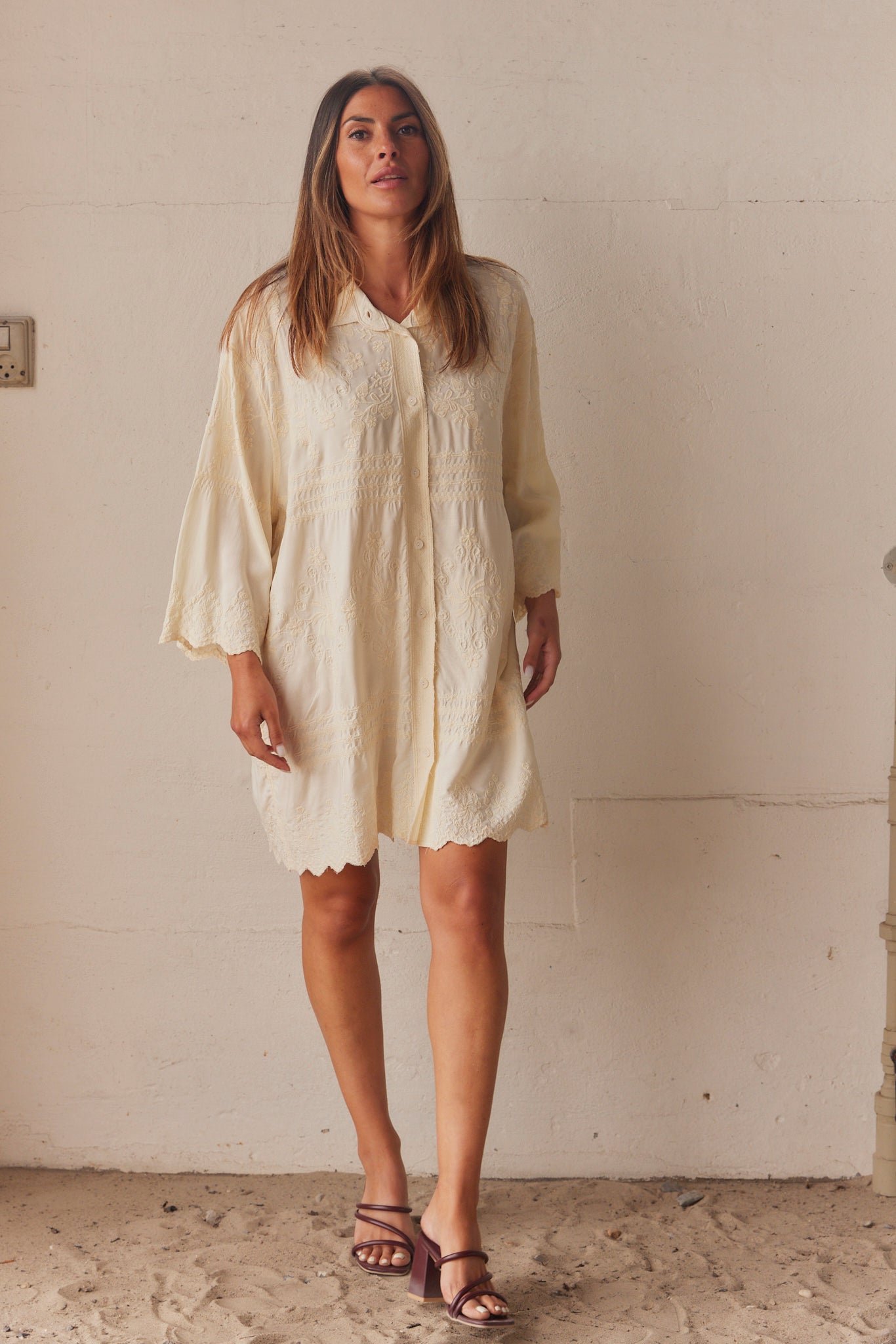 Embla Broderad Skjortklänning | Beige