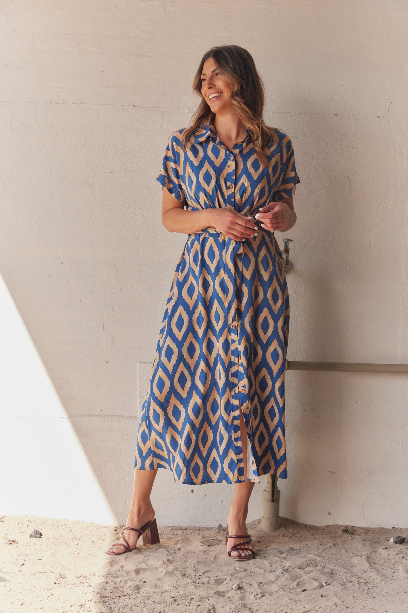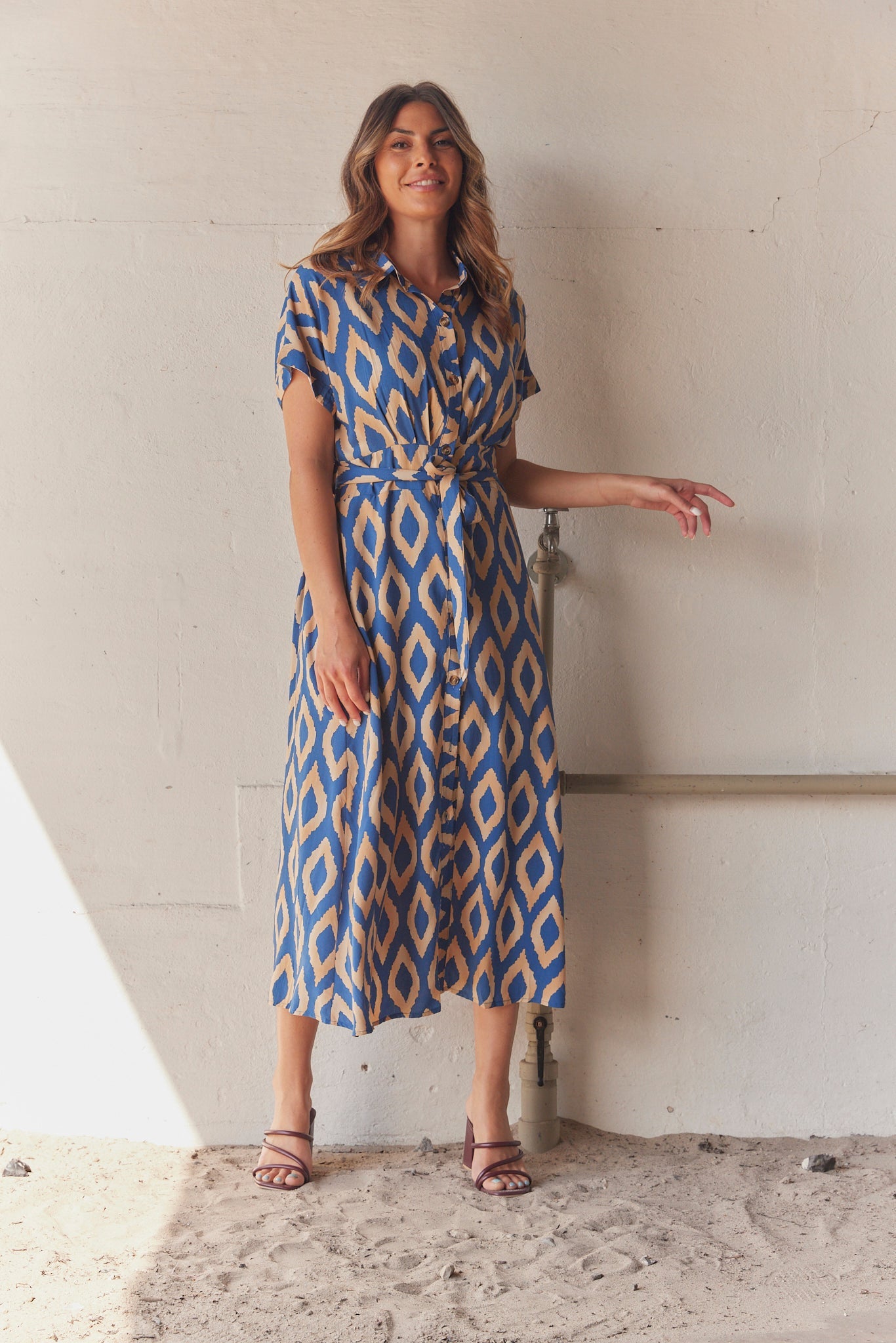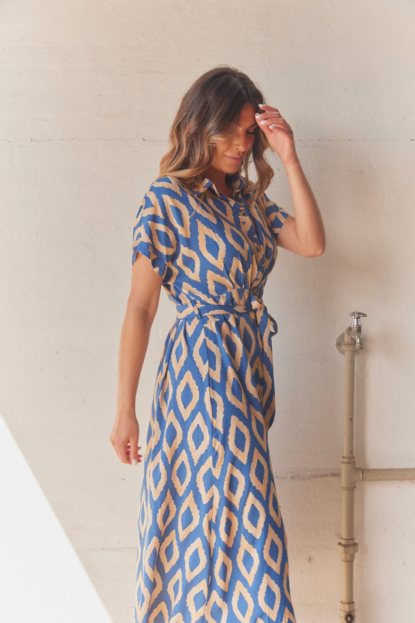 Mönstrad klänning med Mary-motiv | Mörkblå