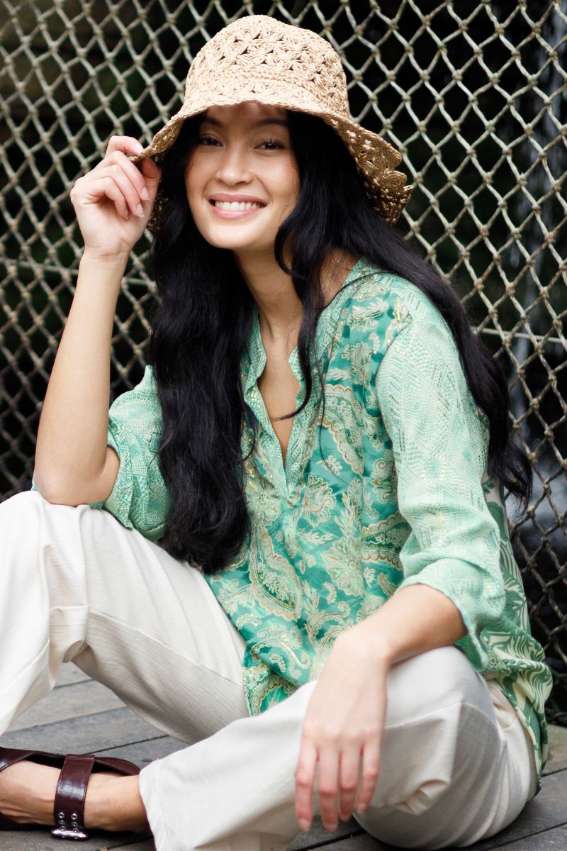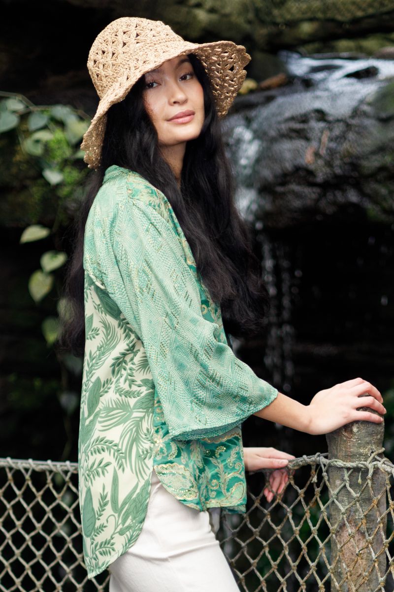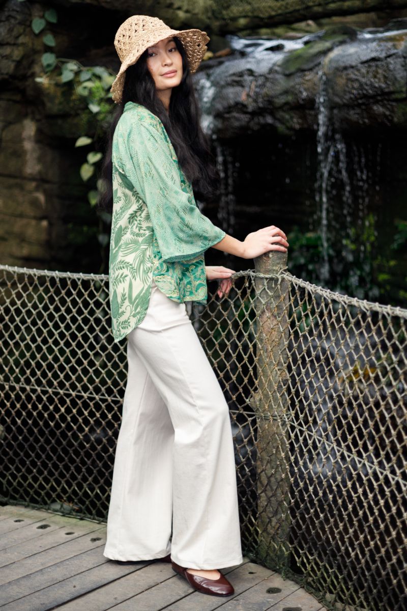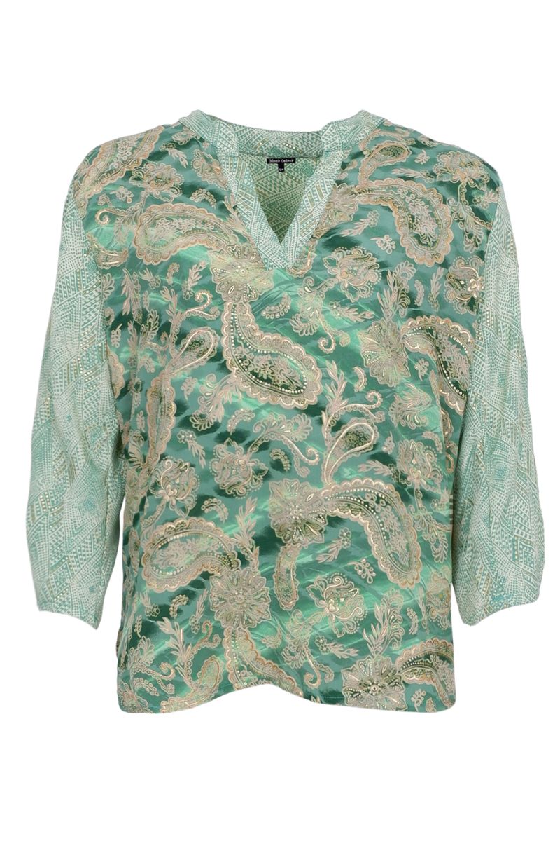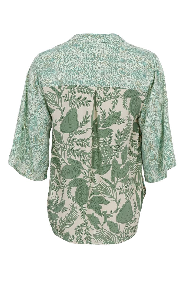 Luna Blus med utsvängda ärmar | Blommig grön mix