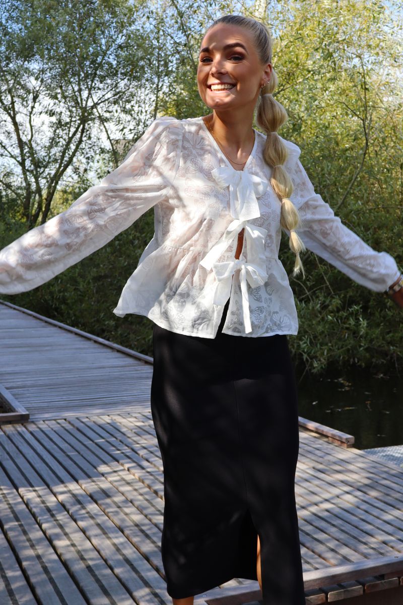 Manni Ls V-ringad blus | Vit fjäril