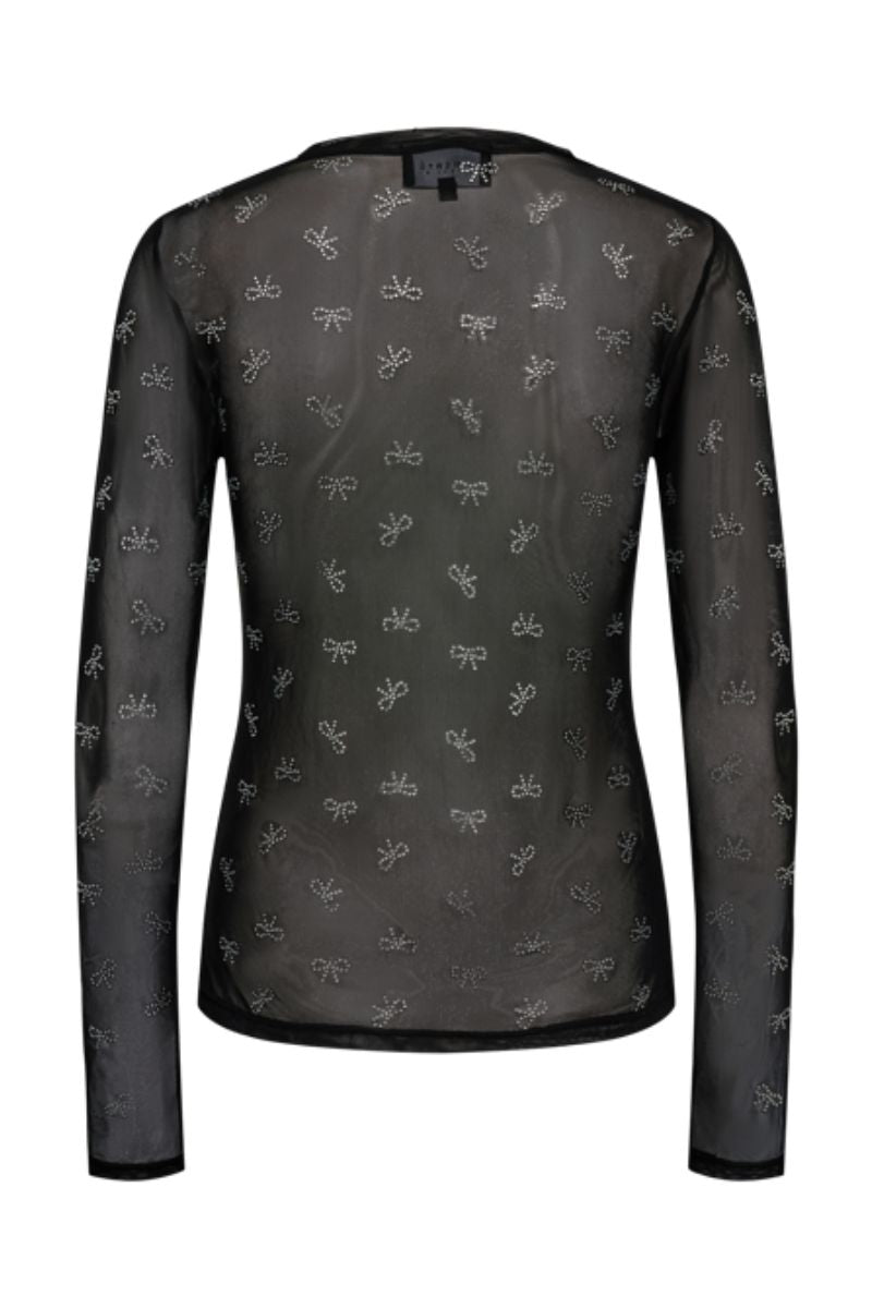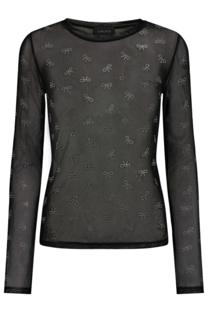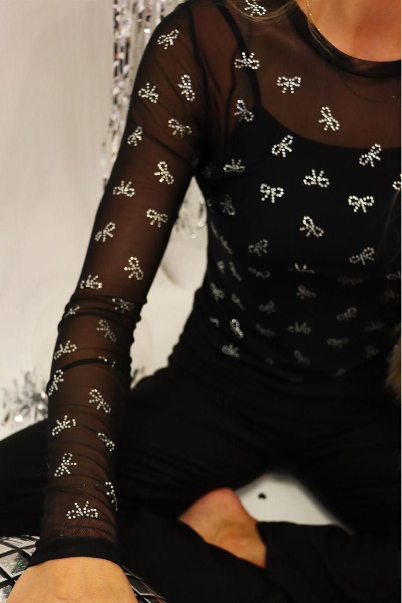 Mesh Ls Glitter T-shirt | Svart Rosett Diamantprickig