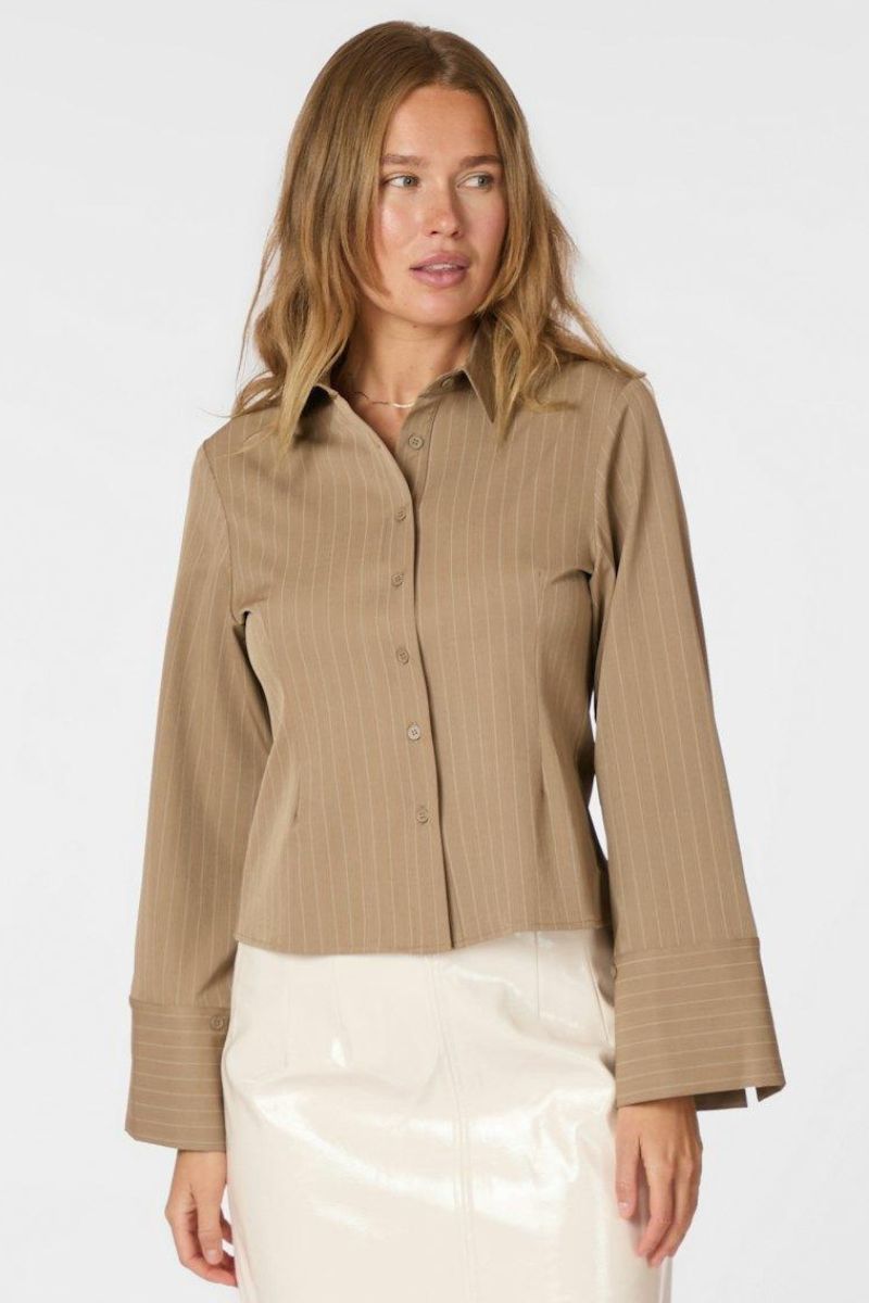 Rosa Pinstripe Skjorta | Mörk Sand