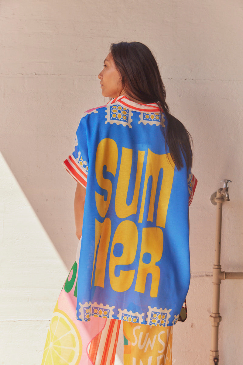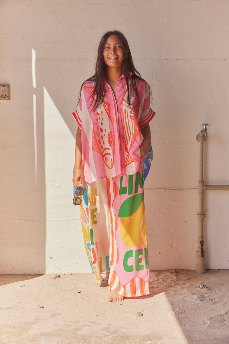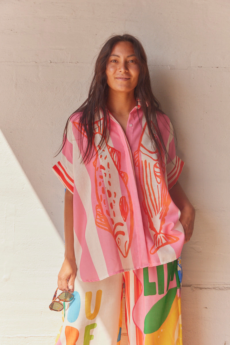 Sommarskjorta med sardiner | Rosa Blå